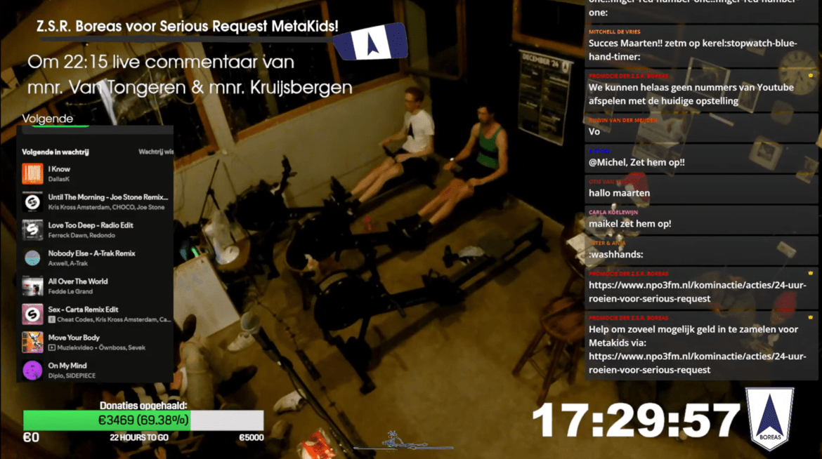 Afgelopen weekend heeft Olaf, lid van Pontos, zich samen met ZSR Boreas ingezet voor het goede doel. In 24 uur tijd legden zij samen maar liefst 718.814 virtuele meters af op de ergometer. Het doel? Zoveel mogelijk geld ophalen voor METAKIDS, en dat is meer dan gelukt! Zaterdagmiddag mocht het team met trots een cheque van € 5.182,- overhandigen aan de dj’s van 3FM Serious Request.